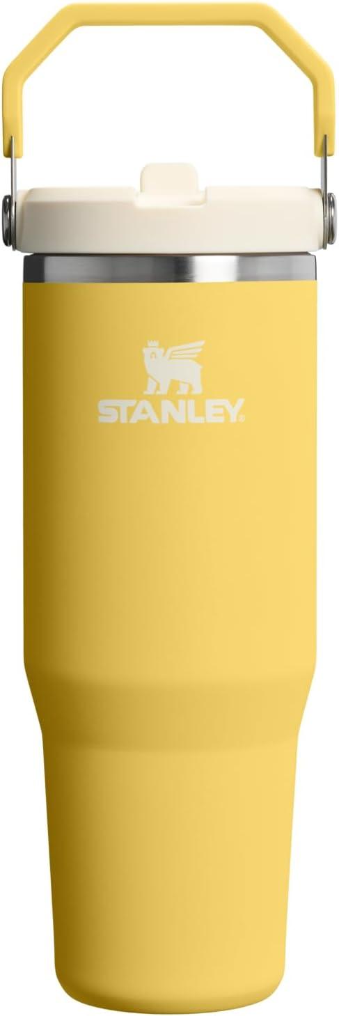 STANLEY IceFlow 2.0 Flip Straw Tumbler with Handle 30 oz | Twist On Lid and Flip Up Straw | Leakproof Water Bottle | Insulated Stainless Steel | BPA-Free | Daffodil(Cream Stripe)