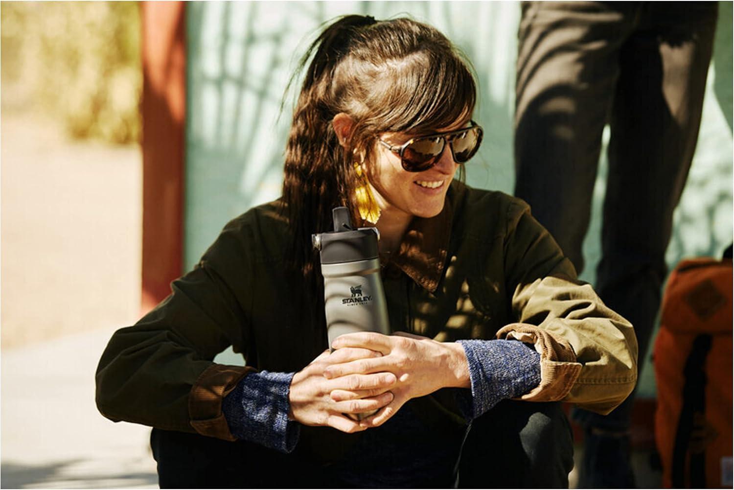 Keep it cool and hydrate in style. This water bottle is the perfect partner for early morning hikes or kayaking on the lake. It features a built-in straw that flips up for easy sipping, then snaps tight to stay fully leak resistant. Stanley’s double-wall vacuum insulation also keeps drinks icy cold longer. The easy-to-hold ergonomic shape and rotating handle allows for a quick grab and go.