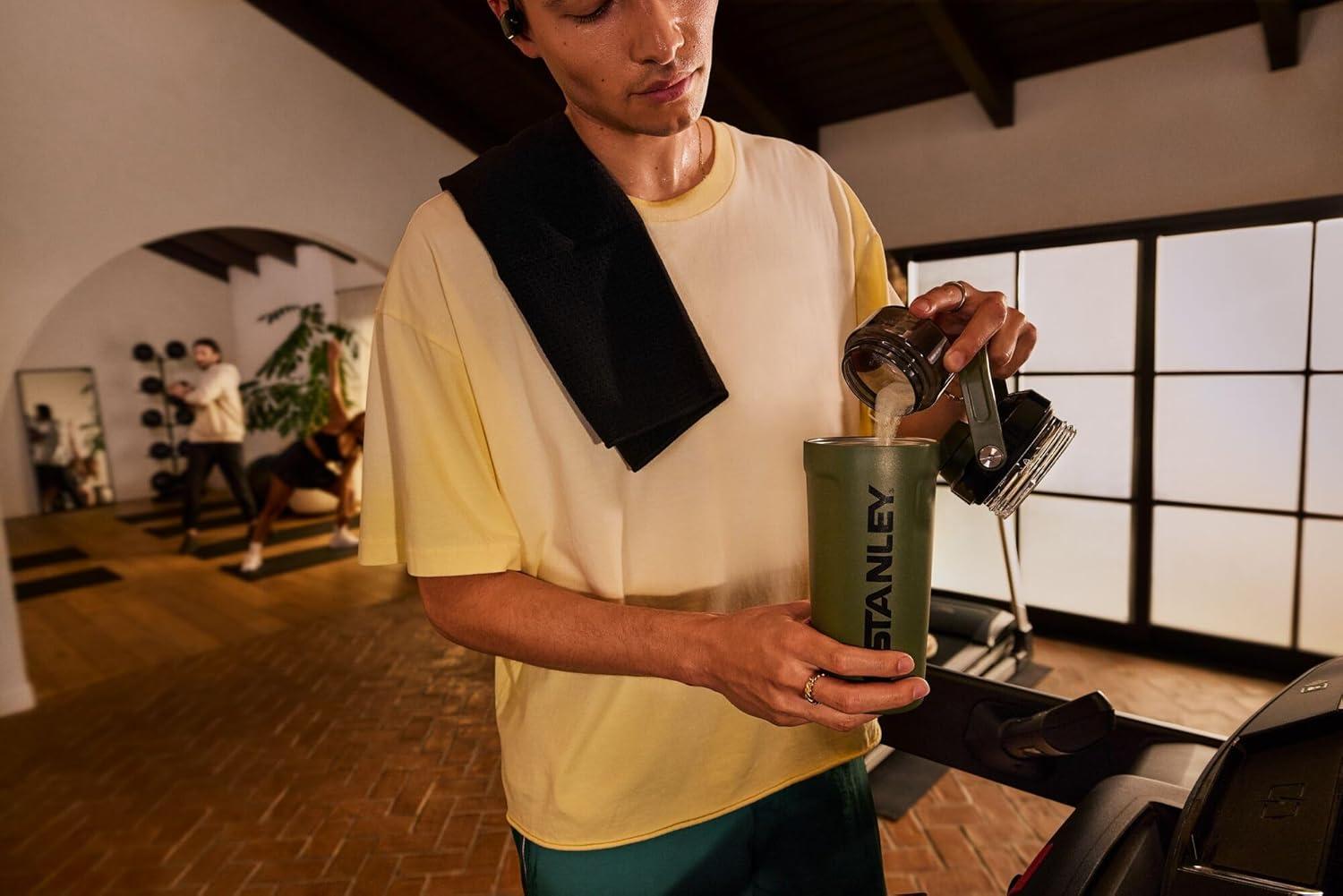 image:imageSTANLEY Vitalize Shaker Bottle 20 oz  Leakproof Insulated Stainless Steel Shaker Cup  Base Storage and Twist On Fast Flow Lid  Protein Shakes and Pre Workout Powder  BPAFree  Chili BlackDried Pine