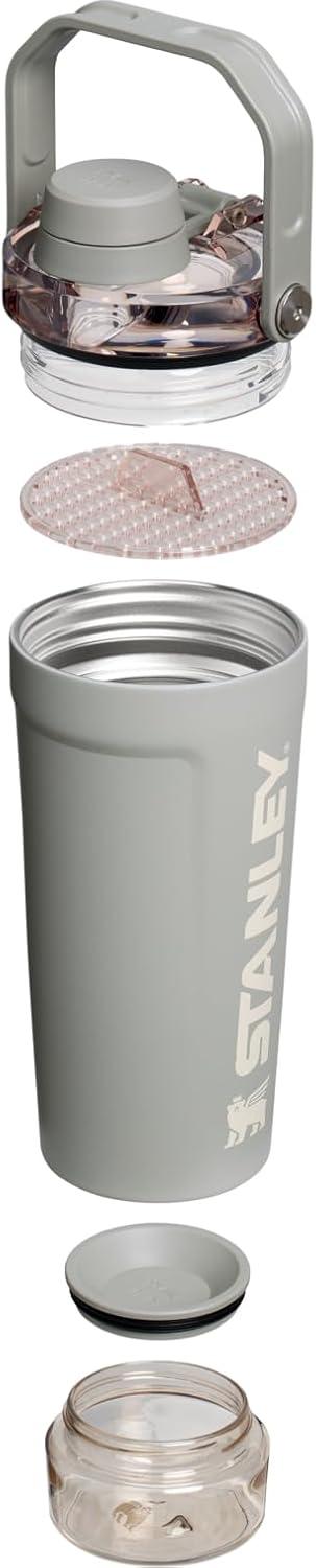 image:imageSTANLEY Vitalize Shaker Bottle 20 oz  Leakproof Insulated Stainless Steel Shaker Cup  Base Storage and Twist On Fast Flow Lid  Protein Shakes and Pre Workout Powder  BPAFree  Chili BlackSage Grey