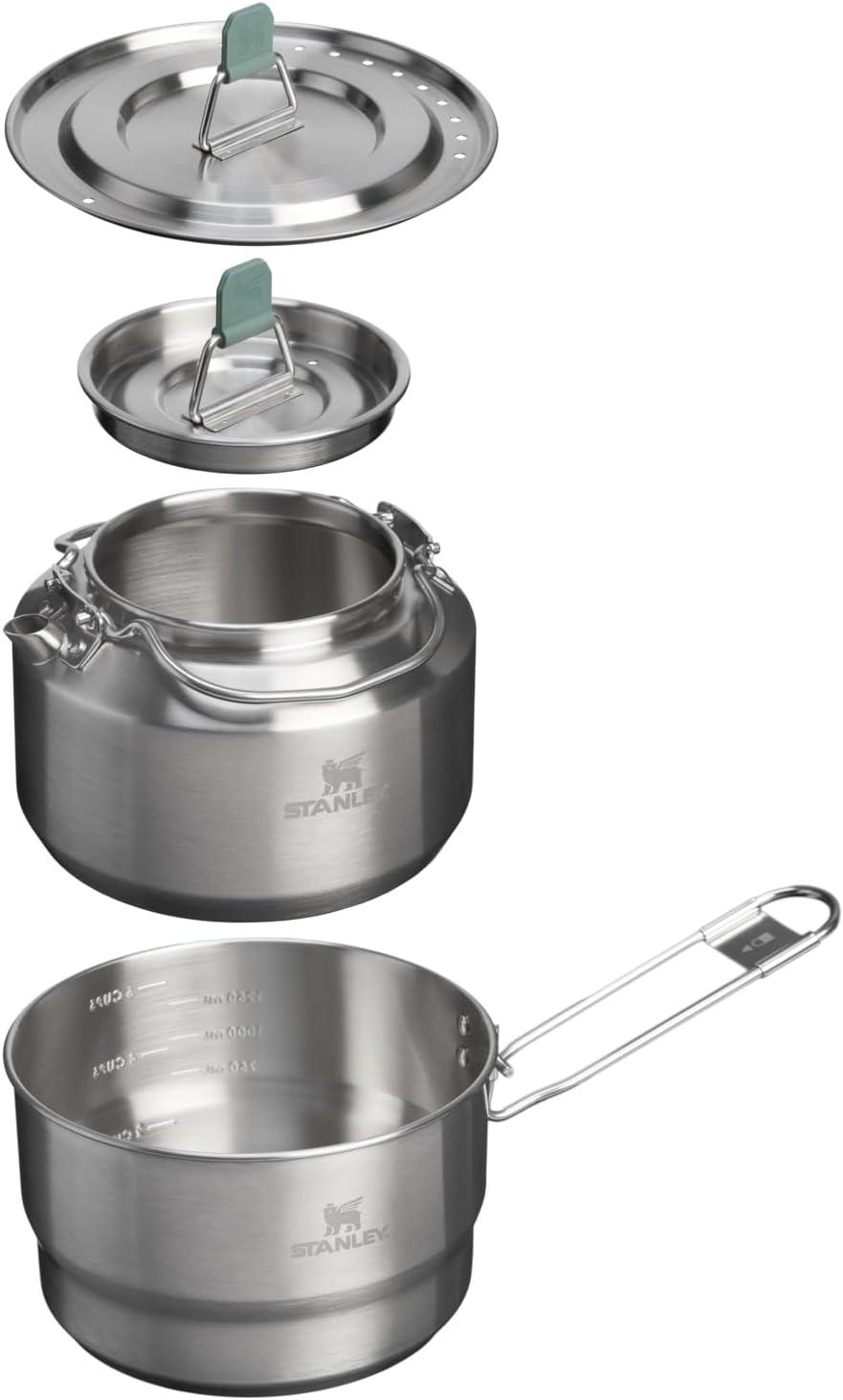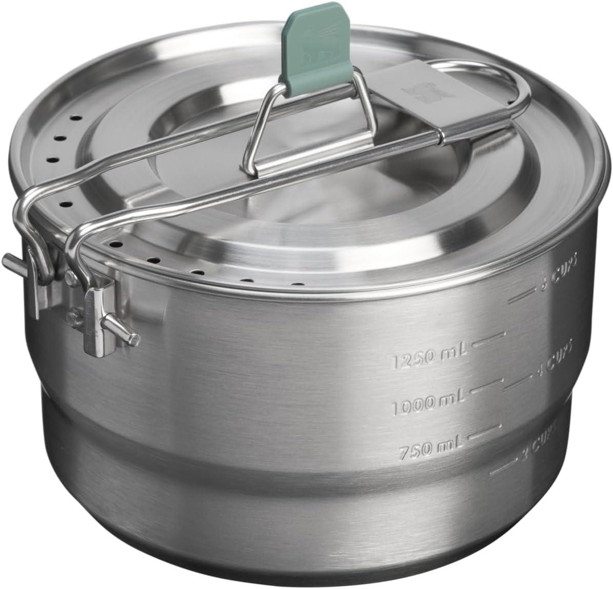 Designed for rugged adventures and everyday convenience, the Stanley Wildfare Go Nesting Kettle Cookset is tough, reliable, and built to last. With a 1.0L capacity, it's perfect for boiling water or preparing meals at camp. Its lightweight form makes it easy to pack and carry, while its durable build stands up to the demands of the outdoors. This kettle is safe for use over open flames, making it an essential tool for campfires and portable stoves. Finished in a sleek Stainless Steel Shale color, it’s also easy to clean, ensuring a hassle-free experience after every use.